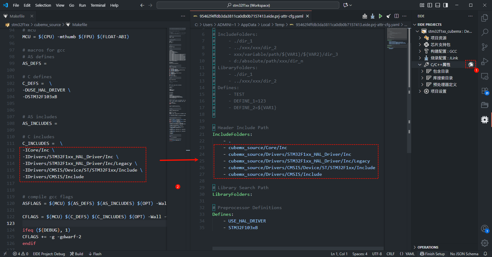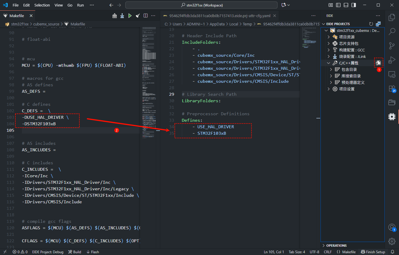 某些时候当你更改了CubeMX中的配置后,Makefile中的宏定义或者包含路径可能会发生变化,