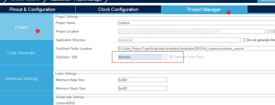 找到 Project 配置项,将 Toolchain 选择为 Makefile
